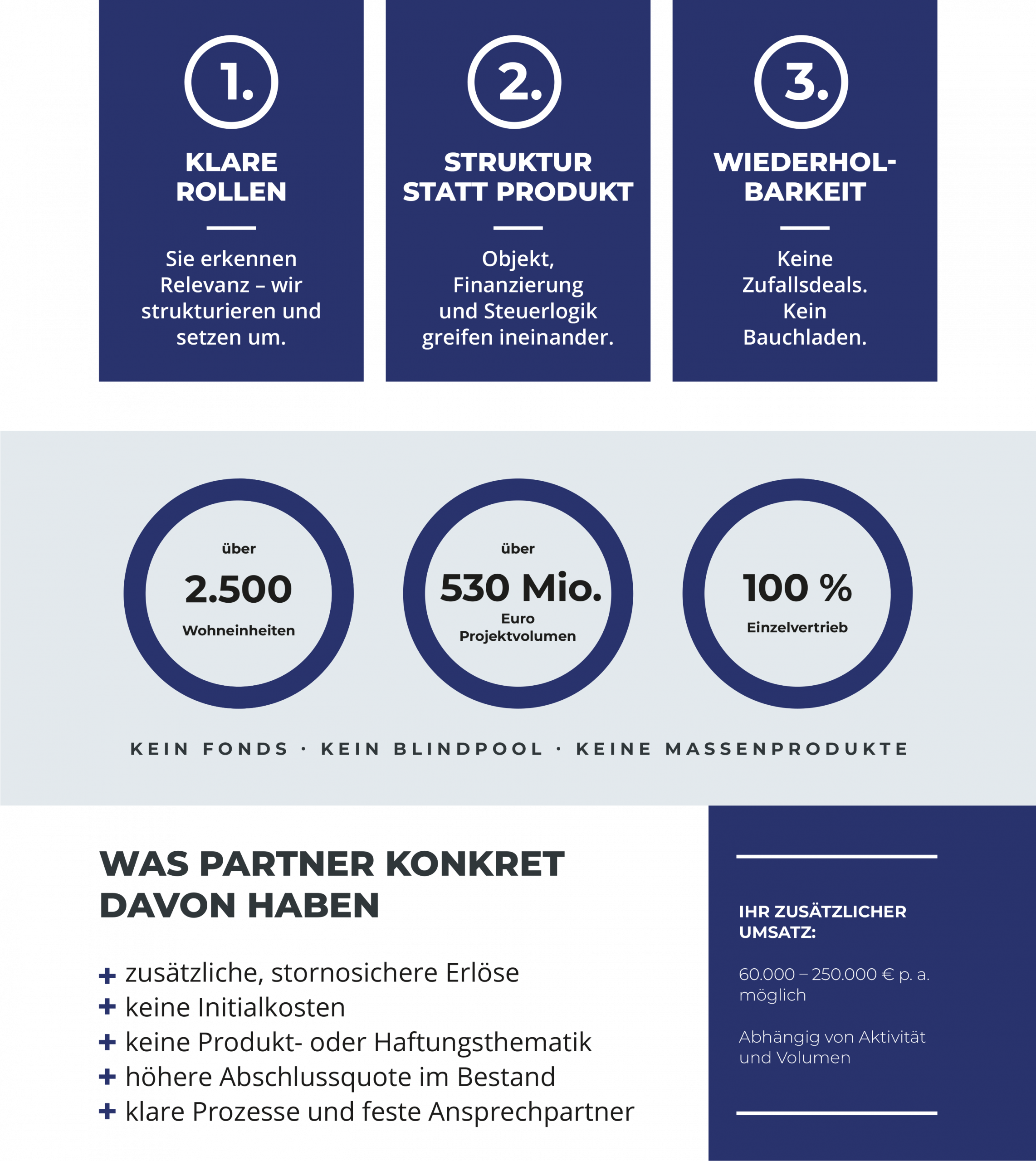 Wir begleiten Menschen beim Aufbau von Immobilienvermögen – nicht punktuell, sondern ganzheitlich und unternehmerisch. Beraten werden unsere Kunden dabei ausschließlich von Unternehmern selbst. Wir tragen selbst Verantwortung und beraten konsequent aus der Kundenperspektive. Wir stehen für Verbindlichkeit, Zuverlässigkeit, tiefe Analyse.